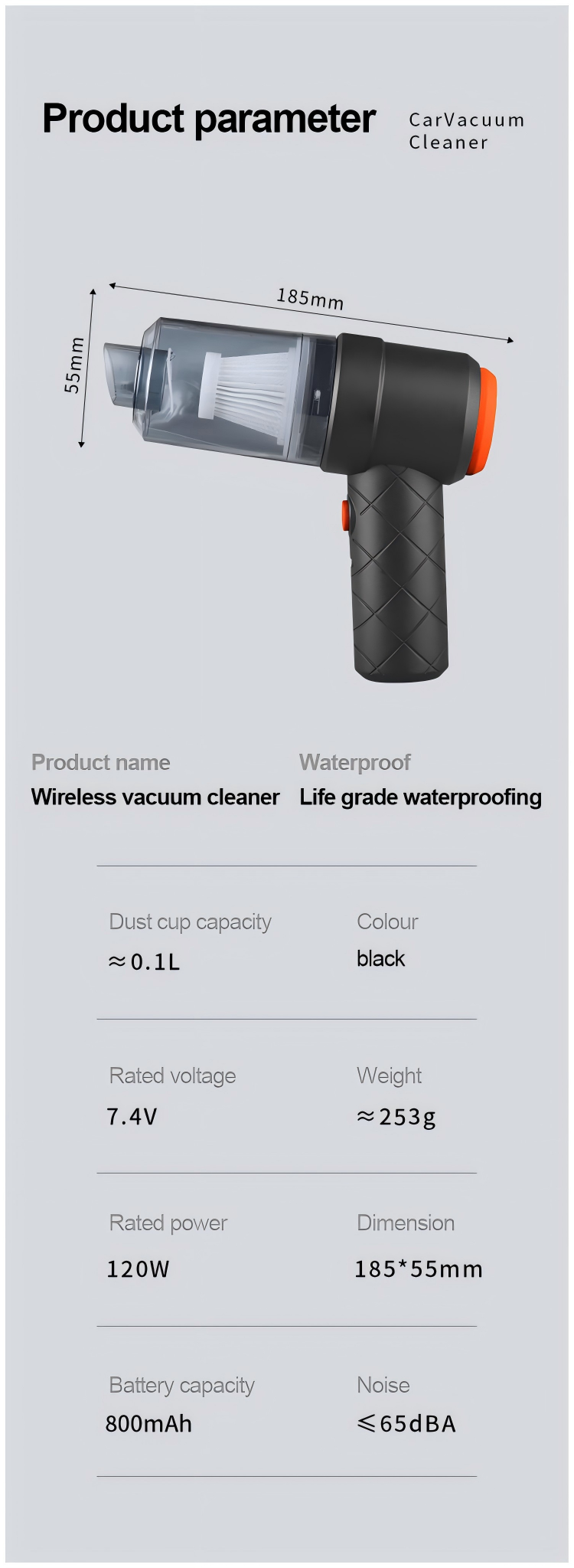 Der kompakte, kabellose Handstaubsauger überzeugt mit einem leistungsstarken 120 W Motor, praktischer Blasfunktion und bis zu 30 Minuten Laufzeit am Stück. Ideal für unterwegs, im Auto oder zu Hause.